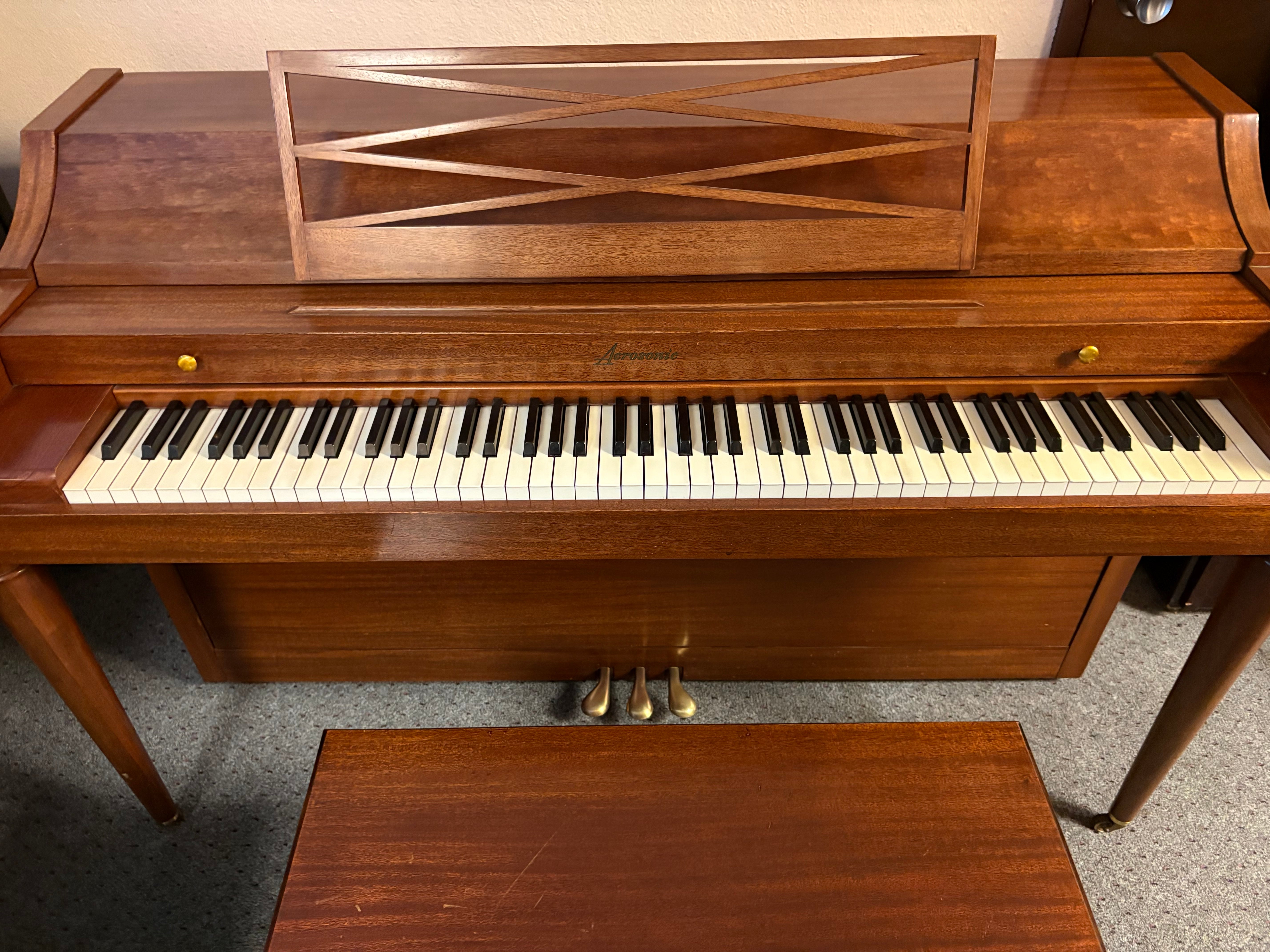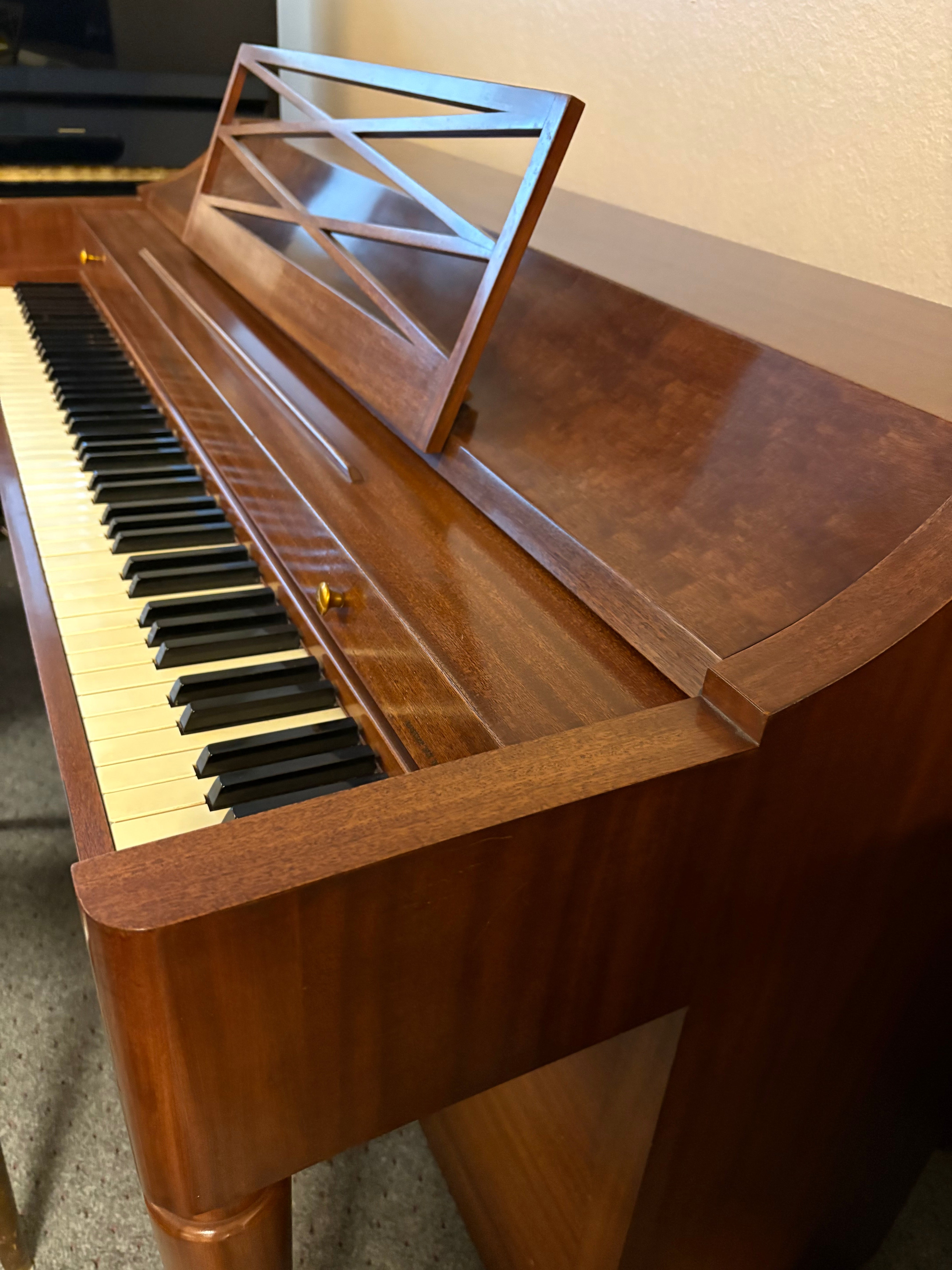This brown mahogany Acrosonic is in very good condition and offers solid construction with a pleasing, balanced sound that supports proper musical development. Built during Baldwin’s respected production years, this model delivers reliability and musical integrity that far exceeds many entry-level uprights available today.