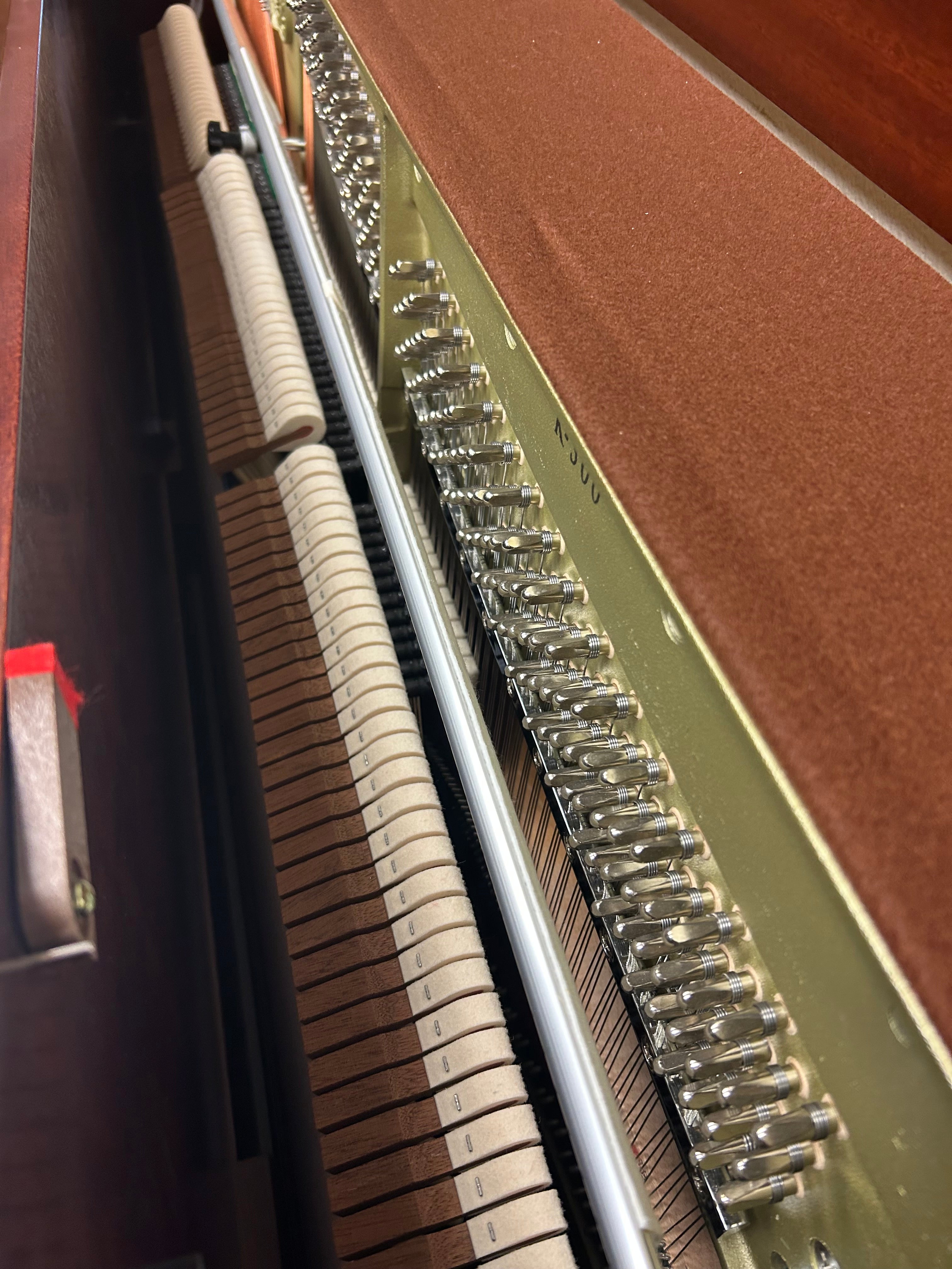 Standing 48 inches (122 cm) tall, this upright features Kawai’s acclaimed Millennium III Upright Action with ABS-Carbon components, delivering outstanding responsiveness, stability, and control across the full dynamic range. The solid spruce soundboard and mahogany-core hammers produce a rich, resonant tone with excellent projection and clarity—making this piano equally suited for advanced students, teachers, studios, churches, and refined home environments.